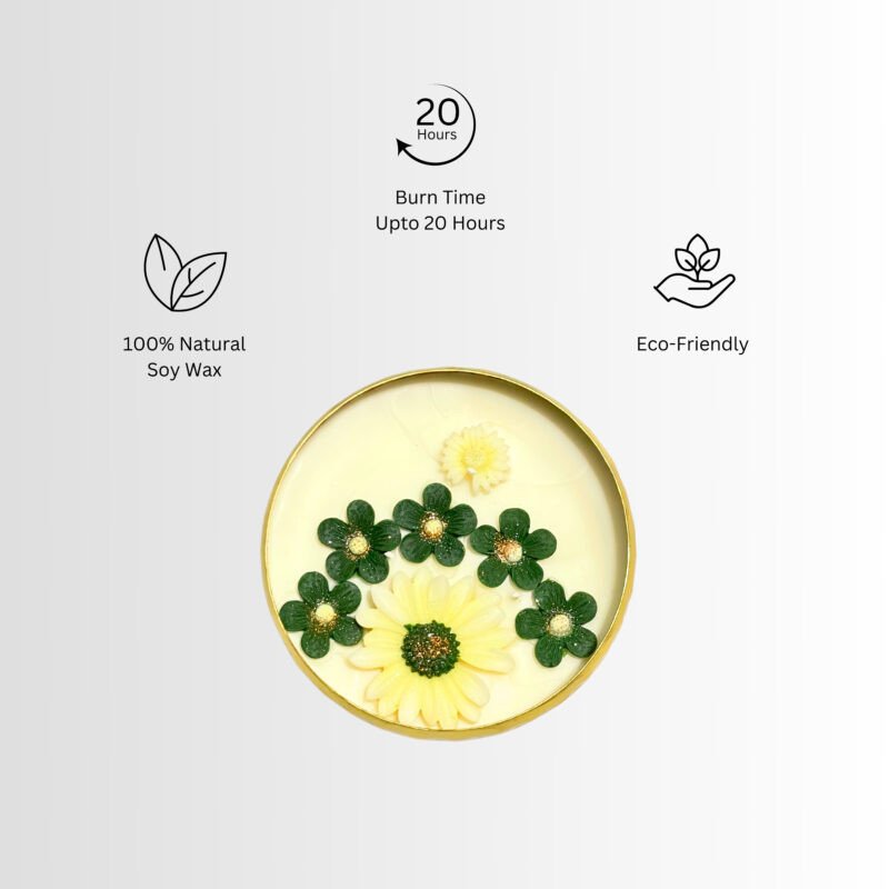 Jasmine Glow Candle sweet aur fresh jasmine fragrance ke saath aati hai jo ghar me natural freshness aur positivity laati hai. Iski floral aroma mood ko uplift karti hai aur stress kam karti hai. Living room, pooja area aur evening relaxation ke liye yeh candle bahut hi suitable hai. Attractive design ise décor ke liye bhi perfect banata hai.
