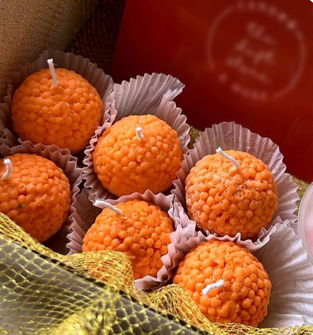 Laddu, besan k laddu, kaju katri, motichoor laddu Candle