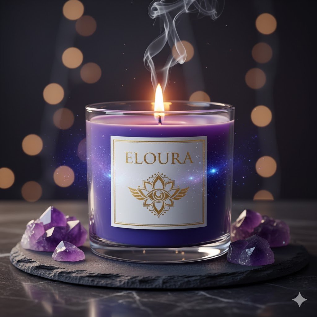 Eloura presents a premium collection of handcrafted soy wax candles, designed for spiritual ambiance, home décor, gifting, and wellness. Our candles are made using high-quality, eco-friendly materials including natural soy wax, essential oils, dried botanicals, and crystal elements – creating a calming and luxurious experience.